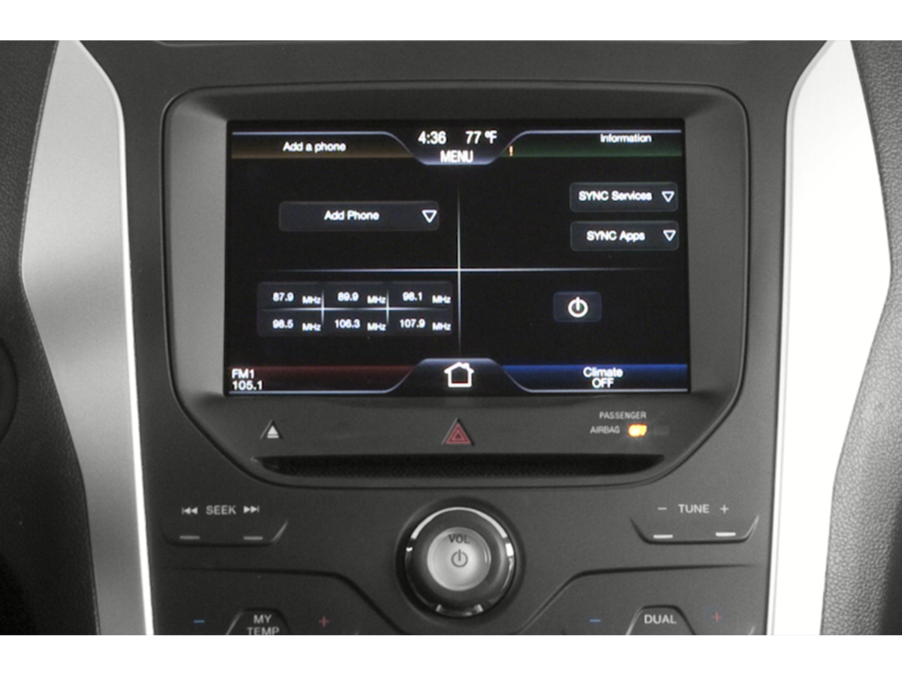 This Ford includes: Optional Equipment: Safety and Security Daytime running lights Digital/analog instrumentation display Rear mounted camera Convenience Auto-dimming rear view mirror Comfort Rubber front and rear floor mats Automatic climate control Dual-zone front climate control Exterior and Appearance Non-metallic paint Front license plate bracket Exterior FRONT LICENSE PLATE BRACKET Front license plate bracket DAYTIME RUNNING LIGHTS Daytime running lights In-car Entertainment 3 total number of 1st row displays 8 inch primary display Primary monitor touchscreen 9 speakers Additional Options Equipment Group 201A Auto-dimming rear view mirror Automatic climate control Air conditioning - Yes Dual-zone front climate control SYNC with MyFord Touch external memory control Performance grade speakers 3 total number of 1st row displays 8 inch primary display Primary monitor touchscreen SYNC Services turn-by-turn navigation system SYNC Services mobile hotspot internet access SYNC AppLink smart device app link Digital/analog instrumentation display Configurable instrumentation gauges Rear mounted camera 9 speakers AM/FM/SiriusXMsatellite Driver Connect Package Interior FLOOR MATS, ALL WEATHER Rubber front and rear floor mats LIGHT STONE UNIQUE CLOTH Auto-Dimming Rearview Mirror Auto-dimming rear view mirror Rearview Camera Rear mounted camera SYNC with MyFord Touch SYNC with MyFord Touch external memory control 3 total number of 1st row displays 8 inch primary display Primary monitor touchscreen SYNC Services turn-by-turn navigation system SYNC Services mobile hotspot internet access SYNC AppLink smart device app link Digital/analog instrumentation display Configurable instrumentation gauges AM/FM/SiriusXMsatellite Dual Zone Electronic Automatic Temperature (DEATC) Automatic climate control Air conditioning - Yes Dual-zone front climate control Entertainment AM/FM Stereo with Single CD/MP3 Capable Single-disc CD player CD player located in the dashboard/instrument panel Radio data system (RDS) CD-R compatible Auxiliary input jack SYNC with MyFord external memory control Standard grade speakers Steering wheel mounted audio controls SYNC voice activated audio controls Bluetooth® wireless audio streaming Bluetooth® handsfree wireless device connectivity SYNC AppLink smart device app link AM/FM/SiriusXMsatellite Premium Audio System with 9 Speakers Performance grade speakers 9 speakers Paint OXFORD WHITE Non-metallic paint Emissions CALIFORNIA EMISSIONS SYSTEM ULEV II emissions Tier 2 Bin 5 emissions Front mounted engine Regular unleaded Spark ignition system Transverse mounted engine Aluminum engine block Aluminum cylinder head 3.5L V-6 DOHC, variable valve control, regular unleaded, engine with 290HP 3.5L V-6 DOHC Engine Configuration - V6 Technology and Telematics SYNC Services turn-by-turn navigation system SYNC Services mobile hotspot internet access *Note - For third party subscriptions or services, please contact the dealer for more information.* This Ford Explorer XLT has a tough exterior complemented by a well-designed interior that offers all the comforts you crave. This 4WD-equipped vehicle handles any condition on- or off-road with the sure footedness of a mountain goat. With unequaled traction and stability, you'll drive with confidence in any weather with this Oxford White 2015 4WD Ford Explorer XLT. More information about the 2015 Ford Explorer: The Ford Explorer has been rated one of the safest utility vehicles at any size or price; it's the first vehicle in the world to offer rear inflatable seatbelts. Curve control--a more advanced version of electronic stability control--is also a Ford exclusive. Ford's MyKey system helps parents reel in teen drivers. The Explorer also stands out for being one of the greenest choices available. Ford claims best-in-class gas mileage for non-hybrids and notes that the Explorer EcoBoost will go 20 percent farther on a gallon of gas than the Honda Pilot. This model sets itself apart with Quiet interior, good value, excellent ride quality, world-class safety features, and EcoBoost engine provides good mileage