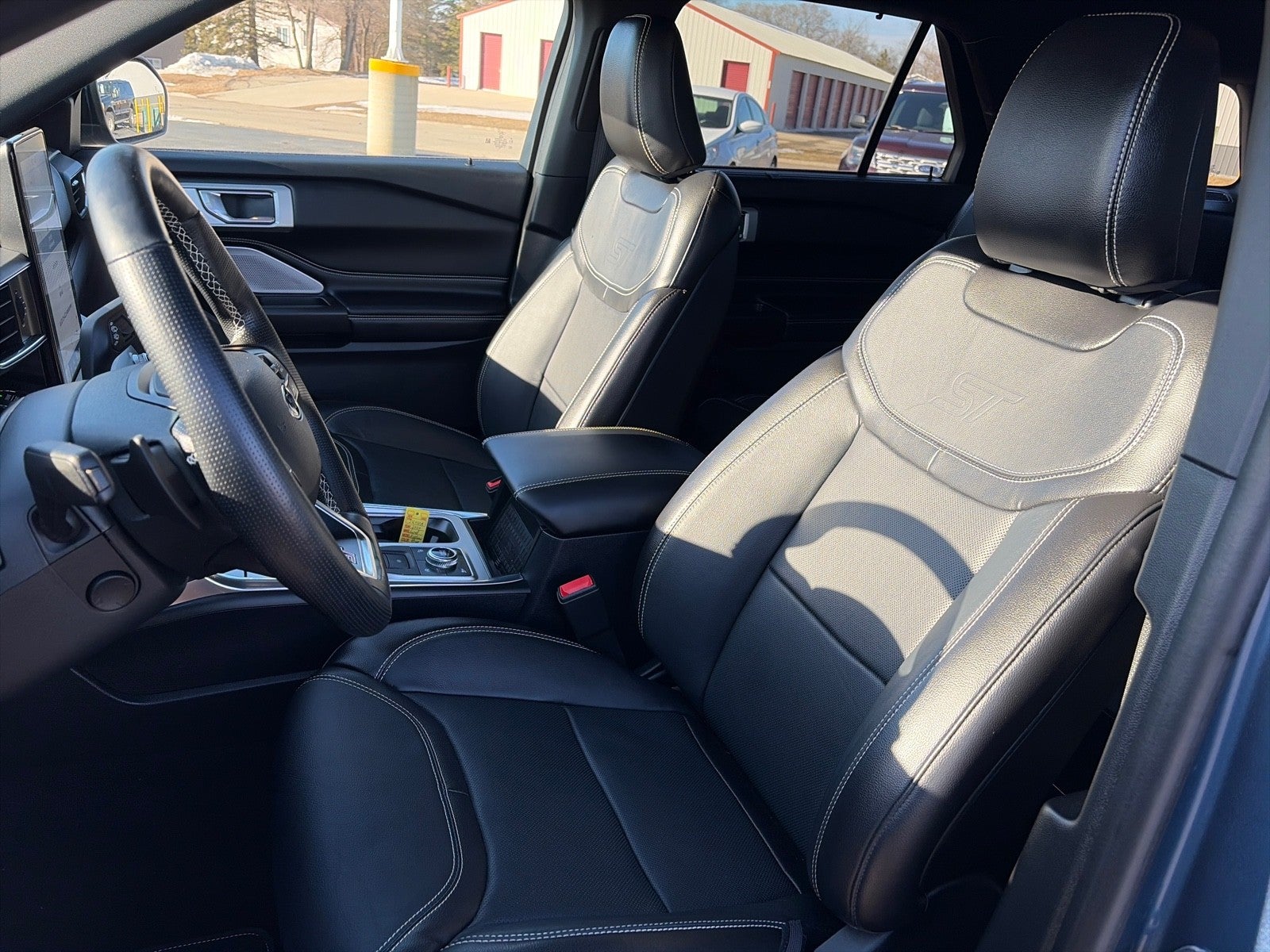 This Ford includes: Optional Equipment: Interior EBONY LTHR SEAT SURFACES 10.1 LCD Capacitive Portrait Touchscreen 10.1 inch primary display Engine ENGINE BLOCK HEATER Engine block heater Entertainment 2 Additional Speakers 14 speakers Comfort Driver seat with 4-way power lumbar Front passenger seat with 4-way power lumbar Exterior and Appearance Metallic paint Front license plate bracket Seating Leather Heated and Ventilated Sport Captain's Chairs Driver seat with 2-way power lumbar Front passenger seat with 2-way power lumbar Height and tilt adjustable front seat head restraints Driver seat power reclining, lumbar support, cushion tilt, fore/aft control and height adjustable control Passenger seat power reclining, lumbar support, cushion tilt, fore/aft control and height adjustable control Driver seat with 4-way power lumbar Front passenger seat with 4-way power lumbar Paint BLUE METALLIC Metallic paint Powertrain and Mechanical Engine block heater Exterior FRONT LICENSE PLATE BRACKET Front license plate bracket Additional Options PREMIUM TECHNOLOGY PACKAGE 10.1 inch primary display 14 speakers Equipment Group 400A 20 x 8-inch front and rear machined w/painted accents aluminum wheels P255/55VR20 AS BSW front and rear tires In-car Entertainment 14 speakers *Note - For third party subscriptions or services, please contact the dealer for more information.* Treat yourself to an SUV that surrounds you with all the comfort and conveniences of a luxury sedan. With amenities and luxuries befitting a modern day king, this splendorous coach reigns supreme. No matter the terrain or weather, you'll drive at ease in this 4WD-equipped vehicle. With exceptional safety features and superb handling, this 4WD was engineered with excellence in mind. Marked by excellent quality and features with unmistakable refined leather interior that added value and class to the Ford Explorer ST 4X4.