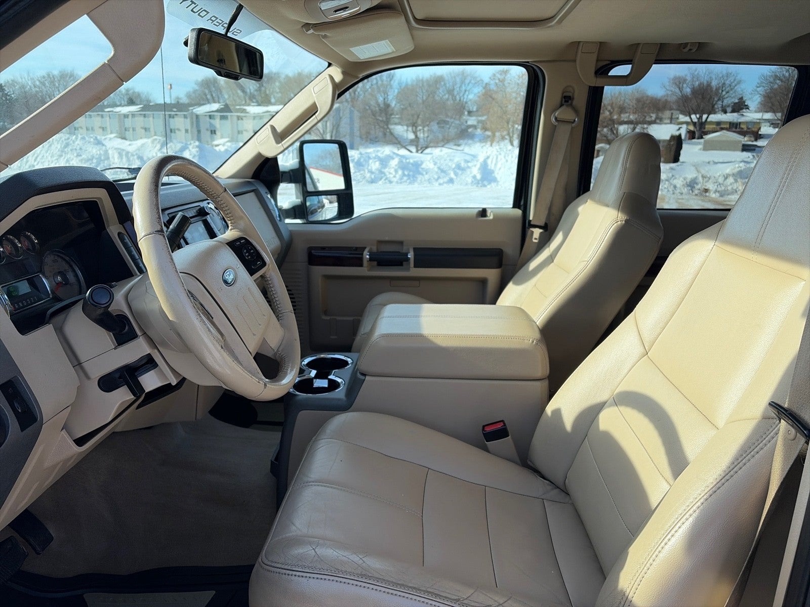 This Ford includes: SNOW PLOW PKG CAMEL, LEATHER LUXURY HEATED CAPTAIN CHAIRS W/CONSOLE Heated Front Seat(s) Leather Seats Bucket Seats LARIAT SERIES ORDER CODE PUEBLO GOLD METALLIC CHROME PKG Tow Hooks Running Boards/Side Steps LOWER ACCENT TWO-TONE PAINT PWR SLIDING MOONROOF Generic Sun/Moonroof Front Reading Lamps Sun/Moonroof 3.55 AXLE RATIO RAPID-HEAT SUPPLEMENTAL CAB HEATER BLACK REAR VIEW CAMERA Back-Up Camera ENGINE BLOCK HEATER EXTRA HD 200-AMP ALTERNATOR NAVIGATION SYSTEM W/SATELLITE RADIO Navigation System Satellite Radio 6.4L OHV TURBO-DIESEL POWER STROKE V8 ENGINE Diesel Fuel 8 Cylinder Engine Turbocharged LARIAT ULTIMATE PKG Mirror Memory Navigation System Back-Up Camera Universal Garage Door Opener Generic Sun/Moonroof Power Driver Seat Satellite Radio Adjustable Pedals Sun/Moonroof *Note - For third party subscriptions or services, please contact the dealer for more information.* You appreciate the finer things in life, the vehicle you drive should not be the exception. Style, performance, sophistication is in a class of its own with this stunning Ford Super Duty F-250 SRW CREW CAB LARIAT 4X4. Where do you want to go today? With 4WD, you can choose to drive virtually anywhere and on terrain 2WD vehicles can't handle. Added comfort with contemporary style is the leather interior to heighten the quality and craftsmanship for the Ford Super Duty F-250 SRW CREW CAB LARIAT 4X4. This Ford Super Duty F-250 SRW offers the most up-to-date navigation system available so you'll always know the most efficient route to where you are going. More information about the 2010 Ford Super Duty F-250 SRW: The 2010 Ford F-250, F-350 Super Duty and F-450 pickups are intended for those who regularly need to tow large trailers or haul heavy loads. When properly equipped, the F-450 can carry nearly 6,200 pounds and tow up to 16,000 pounds. These Super Duty trucks also have several features not otherwise offered in their class, such as a rearview camera system and PowerScope mirrors that fold in and telescope. Interesting features of this model are standout convenience features., Towing and hauling capability, wide range of configurations, and toughness