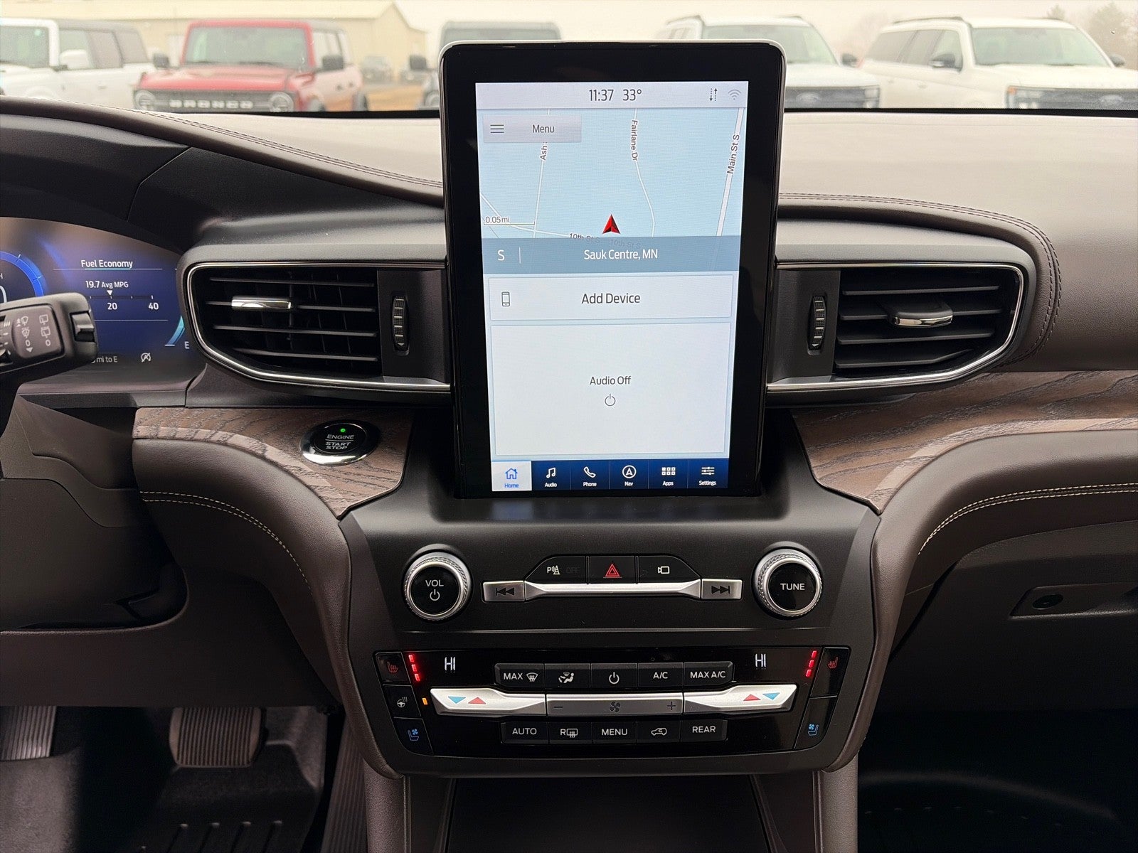 This Ford includes: Optional Equipment: Interior LT SNDSTNE LTH SEAT SURFACE 10.1 LCD Capacitive Portrait Touchscreen 10.1 inch primary display Primary monitor touchscreen Entertainment 2 Additional Speakers 980W amplifier 14 speakers Comfort Driver seat with 4-way power lumbar Front passenger seat with 4-way power lumbar Massaging driver seat Massaging front passenger seat Exterior and Appearance Metallic paint Front license plate bracket Paint SILVER SPRUCE METALLIC Metallic paint Seating Leather Heated and Ventilated Sport Captain's Chairs Bucket front seats Heated driver and front passenger seats Ventilated driver and front passenger seats Driver seat with 2-way power lumbar Front passenger seat with 2-way power lumbar Height and tilt adjustable front seat head restraints Manual front seat head restraint control Leather front seat upholstery Memory settings include: door mirrors and steering wheel Driver seat power reclining, lumbar support, cushion tilt, fore/aft control and height adjustable control Passenger seat power reclining, lumbar support, cushion tilt, fore/aft control and height adjustable control Driver seat with 4-way power lumbar Front passenger seat with 4-way power lumbar Massaging driver seat Massaging front passenger seat Exterior FRONT LICENSE PLATE BRACKET Front license plate bracket Additional Options PREMIUM TECHNOLOGY PACKAGE 980W amplifier 10.1 inch primary display Primary monitor touchscreen 14 speakers Equipment Group 600A In-car Entertainment 14 speakers *Note - For third party subscriptions or services, please contact the dealer for more information.* This versatile SUV is perfect for families or contractors with its oversized cargo area, exceptional horsepower and option upgrades. This Ford Explorer PLATINUM's level of quality is not meant for just anyone. It's meant for the person who strives for a classy, comfortable, and luxurious car. Take home this Ford Explorer PLATINUM, and you will have the power of 4WD. It's a great feature when you need to drive over tricky terrain or through inclement weather. Marked by excellent quality and features with unmistakable refined leather interior that added value and class to the Ford Explorer PLATINUM. You can take the guesswork out of searching for your destination with this Ford Explorer PLATINUM's installed Navigation system.