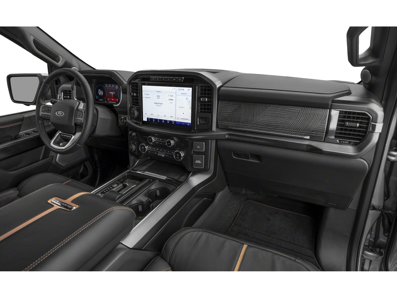 This Ford includes: Optional Equipment: Safety and Security Hill Descent Control Ford Co-Pilot360 Active 2.0 - BlueCruise hands-off cruise control Ford Co-Pilot360 - 360 Degree Camera front mounted camera with washer Ford Co-Pilot360 - 360 Degree Camera right side camera Ford Co-Pilot360 - 360 Degree Camera left side camera Reverse Camera rear mounted camera Ford Co-Pilot360 - Active Park Assist 2.0 front and rear parking sensors Rock Crawl Mode off-road speed control 360 Degree Camera aerial view camera Ford Co-Pilot360 - Active Park Assist 2.0 automatic vehicle parking Convenience Power open and close tailgate Inclinometer Integrated tailgate step Smart device-as-key proximity door locks 2 exterior 120V AC power outlets 2.000 kW Comfort Leather and aluminum console insert Vinyl/rubber front and rear secondary floor mats Exterior and Appearance 3 underbody skid plates Tough Bed spray-in pickup bed liner Hard tonneau cover Metallic paint Exterior badging Pro Trailer Backup Assist vehicle and trailer reverse assist First and second-row sliding and tilting glass sunroof with express open/close activation sunshade Mechanical EXTENDED RANGE 36GAL FUEL TANK Hill Descent Control Hill Descent Control Seating Unique Multi-Contour Carmelo Leather Bucket Seats Seating capacity - 5 Bucket front seats Heated driver and front passenger seats Ventilated driver and front passenger seats Driver seat with 8-way directional controls Front passenger seat with 8-way directional controls Height and tilt adjustable front seat head restraints Manual front seat head restraint control Leather front seat upholstery Leatherette front seatback upholstery Leather and chrome gear shifter material Leather and aluminum console insert Leather rear seat upholstery Carpet rear seatback upholstery Memory settings include: door mirrors, steering wheel and pedals 3 memory settings Full floor console Locking floor console storage 10 beverage holders Rear console climate control ducts Front seat center armrest Driver seat power reclining, lumbar support, cushion tilt, fore/aft control and height adjustable control Passenger seat power reclining, lumbar support, cushion tilt, fore/aft control and height adjustable control Massaging driver seat Massaging front passenger seat Powertrain and Mechanical Off-road ride suspension Gas-pressurized shock absorbers Driver selectable rear locking differential Exterior TWIN PANEL MOONROOF Mini overhead console First and second-row sliding and tilting glass sunroof with express open/close activation sunshade BEDLINER-TOUGHBED SPRAYIN*ACCY Tough Bed spray-in pickup bed liner WHEEL WELL LINER 4x4 FX4 Off-Road Bodyside Decal Exterior badging In-car Entertainment B&O Unleashed Sound System by Bang & Olufsen speakers 1080W amplifier 18 speakers Additional Options MAX TRAILER TOW PACKAGE Pro Trailer Backup Assist vehicle and trailer reverse assist Trailer hitch light FX4 OFF-ROAD PACKAGE Off-road ride suspension Gas-pressurized shock absorbers Heavy-duty gas-pressurized shock absorbers Hill Descent Control 3 underbody skid plates Exterior badging Inclinometer Rock Crawl Mode off-road speed control Equipment Group 701A High Tow Technology Package Ford Co-Pilot360 - BLIS with Trailer Tow Coverage blind spot warning Pro Trailer Backup Assist vehicle and trailer reverse assist Trailer hitch light Ford Co-Pilot360 Active 2.0 Package Ford Co-Pilot360 Active 2.0 - BlueCruise hands-off cruise control Keyfob keyless entry Driver Alert Ford Co-Pilot360 - Active Park Assist 2.0 front and rear parking sensors Ford Co-Pilot360 - Active Park Assist 2.0 automatic vehicle parking Smart device-as-key proximity door locks Interior INTERIOR WORK SURFACE PRO POWER ONBOARD - 2KW 2 exterior 120V AC power outlets 2.000 kW LINER-TRAY STYLE-W/CARPET MAT Vinyl/rubber front and rear secondary floor mats TONNEAU COVER-HARD *ACCY Hard tonneau cover BLACK INT W/CARMELO LEATHER 360 Degree Camera Ford Co-Pilot360 - 360 Degree Camera front mounted camera with washer Ford Co-Pilot360 - 360 Degree Camera right side camera Ford Co-Pilot360 - 360 Degree Camera left side camera Reverse Camera rear mounted camera 360 Degree Camera aerial view camera Power Tailgate Power open and close tailgate Tailgate/power door lock Keyfob trunk control Integrated tailgate step BlueCruise Hands-Free Driving Ford Co-Pilot360 Active 2.0 - BlueCruise hands-off cruise control Driver Alert Active Park Assist 2.0 Ford Co-Pilot360 - Active Park Assist 2.0 front and rear parking sensors Ford Co-Pilot360 - Active Park Assist 2.0 automatic vehicle parking Entertainment B&O Unleashed Sound System by Bang & Olufsen Radio 3 month satellite trial subscription B&O Unleashed Sound System by Bang & Olufsen speakers 1080W amplifier Digital signal processor 18 speakers AM/FM/digital/SiriusXM with 360Lsatellite Paint KODIAK BROWN METALLIC Metallic paint Emissions 50 STATE EMISSIONS Federal emissions Trailering Pro Trailer Backup Assist Pro Trailer Backup Assist vehicle and trailer reverse assist Trailer hitch light Suspension 3.73 ELECTRONIC LOCK RR AXLE Driver selectable rear locking differential Skid Plates 3 underbody skid plates Off-Road Tuned Front Shock Absorbers Off-road ride suspension Heavy-duty gas-pressurized shock absorbers Rock Crawl Mode Rock Crawl Mode off-road speed control Monotube Rear Shocks Gas-pressurized shock absorbers Heavy-duty gas-pressurized shock absorbers *Note - For third party subscriptions or services, please contact the dealer for more information.* Is it possible to fall in love with a vehicle? It is when your vehicle is as prestige as the Ford F-150. This Ford F-150 PLATINUM comes equipped with 4 wheel drive, which means no limitations as to how or where you can drive. Different terrains and varying weather conditions will have no effect as to how this vehicle performs. Intricately stitched leather and ergonomic design seats are among the details in which test drivers say that Ford F-150 PLATINUM is in a league of its own You can forg